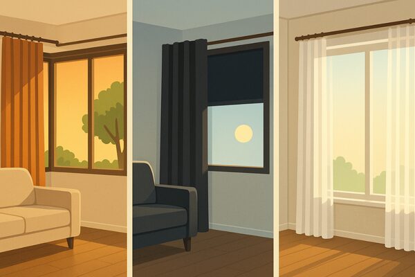 • 防音性の付加: 道路に面した窓の場合、高密度の厚手カーテンや、遮音性能を持つ裏地を付けることで、外部の騒音を軽減し、静かな室内環境を実現します。