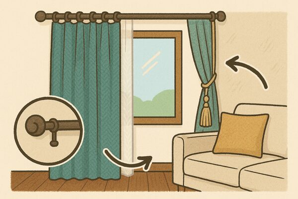 - 装飾レール: モダンなアイアンレール、ナチュラルな木製レールなど、カーテンレールは空間のテイストを決定づける重要なアイテムです。カーテンの生地の雰囲気に合うレールを選びましょう。