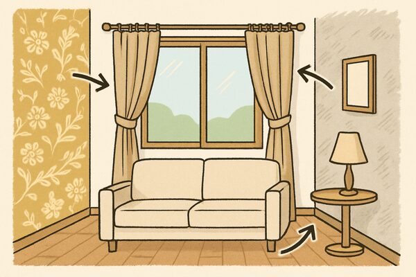- 柄のバランス: 壁紙に柄物を選んだ場合、カーテンは無地や控えめな織り柄を選ぶことで、空間全体のうるささを避けることができます。