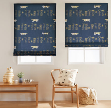 マイキーの最も代表的なスタイル。その愛らしいしま模様が整然と並び、窓辺にリズムと楽しい動きを与えてくれます。