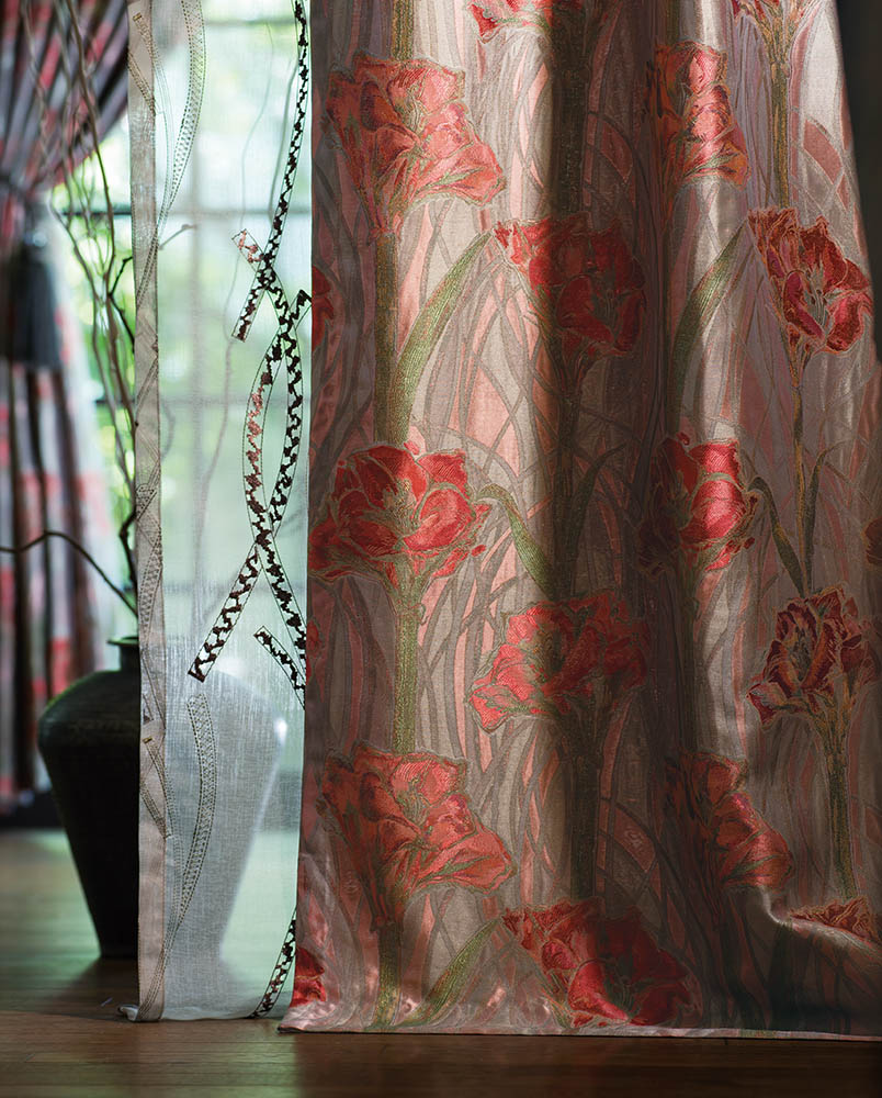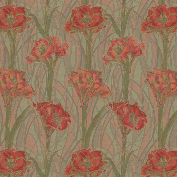 選定理由:アマリリスの花びらの厚みまで感じることの出来るデザインと、シルクのような緻密な織組織で表現した名作です。