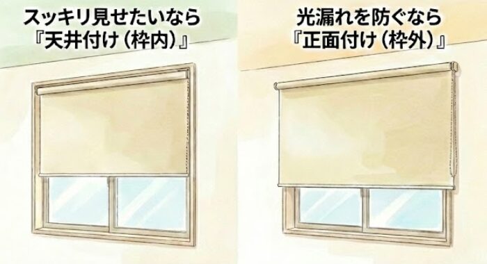 窓枠を覆うように壁面に設置します。窓全体をカバーするため、遮光性や断熱性が高まります。