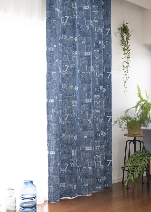 選定理由: 「Safety in numbers(数は力なり)」というコンセプトのもと、様々なフォントの数字がランダムに散りばめられたデザインです。 子供っぽさを排除したクールなグラフィックは、まるで暗号のよう。数学的な美しさとストリートアートのようなカッコよさを兼ね備えており、小学校高学年から中学生になっても「自分の部屋が一番カッコいい」と誇れる一枚です。 ベースは本物のデニム生地なので耐久性も抜群。お子様の成長と共に生地も味わいを増していく、まさに「育てるカーテン」です。
