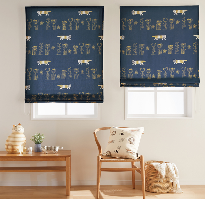 フラットな一枚布で窓を覆うため、使わない時は上部にコンパクトに収納できるのが特徴です。