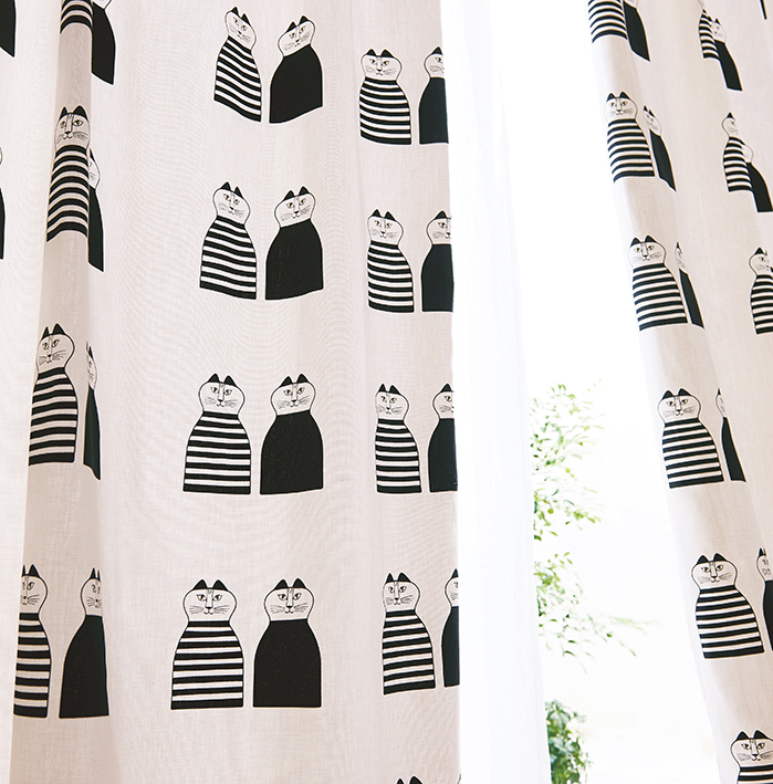 フィンレイソンのカーテンは、動物や自然をモチーフにした親しみやすいデザインだけでなく、幾何学や抽象的なパターンを通して、北欧の伝統と現代性を同時に表現しています。